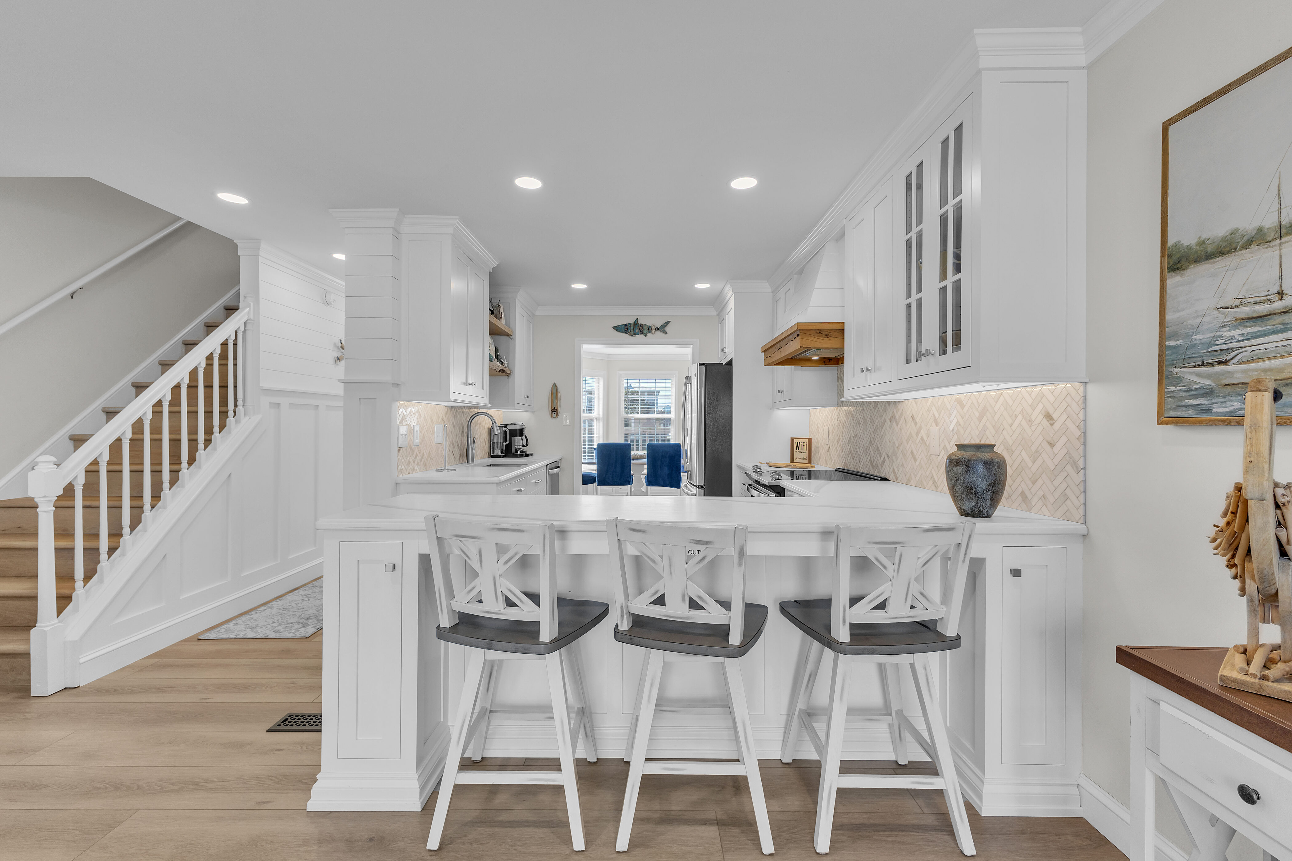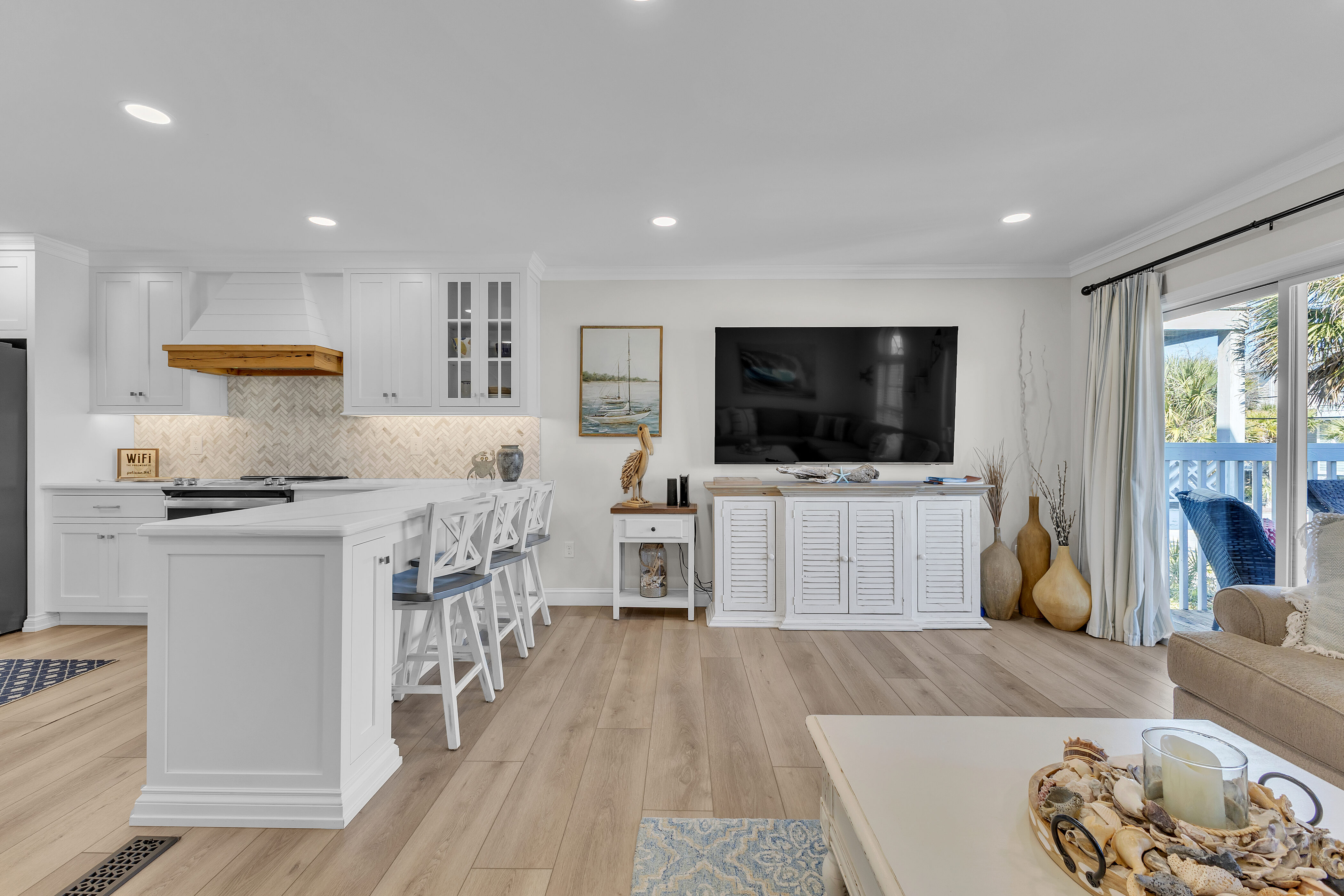 Stay "Happy As A Clam" in this newly renovated 4-bedroom duplex, perfectly situated directly across from the ocean. This spacious, family-friendly retreat sleeps 10 and features a modern kitchen and upgraded bathrooms, blending luxury with a prime location just steps from the sand and three blocks from the heart of downtown Kure Beach. Whether you're watching the sunrise from the deck or taking a short stroll to the pier, this home offers the ultimate coastal experience for your next group getaway.