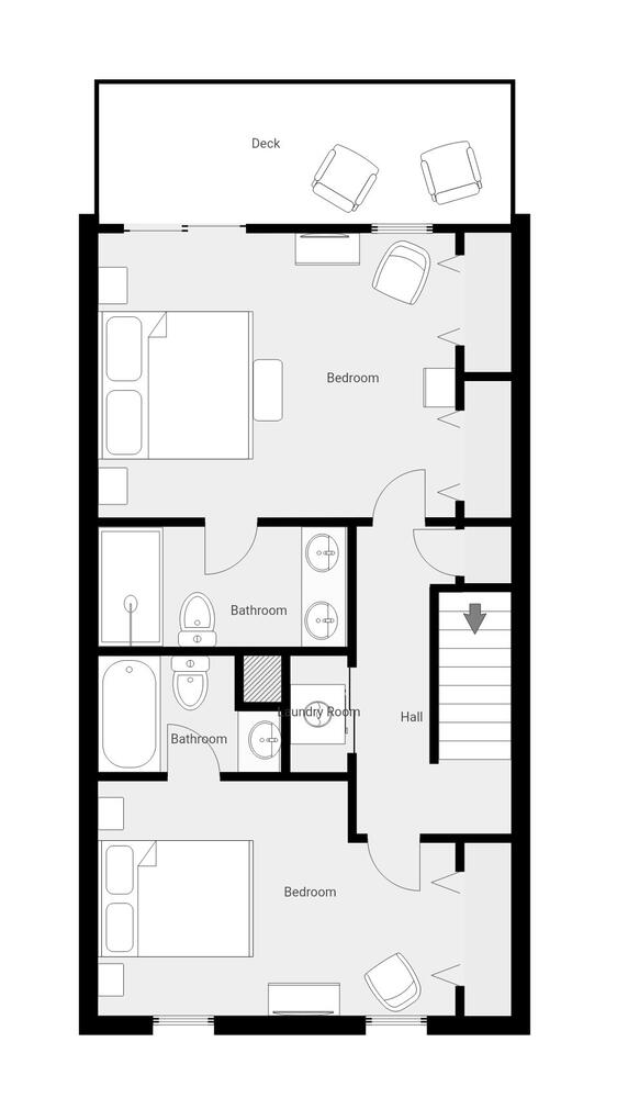 * Third Floor: Features 2 bedrooms, one king and one queen, both large closets and ensuite bathrooms